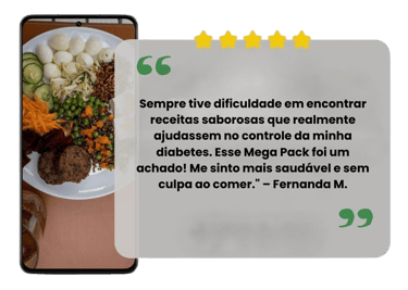 Com o Mega Pack de Receitas para Diabéticos, você poderá desfrutar de pratos saudáveis e saborosos, desenhados para manter seus níveis de glicose controlados e facilitar o seu dia a dia.