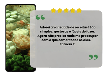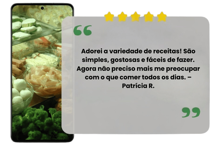 Diferente de materiais genéricos que você encontra por aí, este pacote é atualizado com novas receitas e realmente pensado para quem busca uma alimentação saudável e saborosa sem complicação.